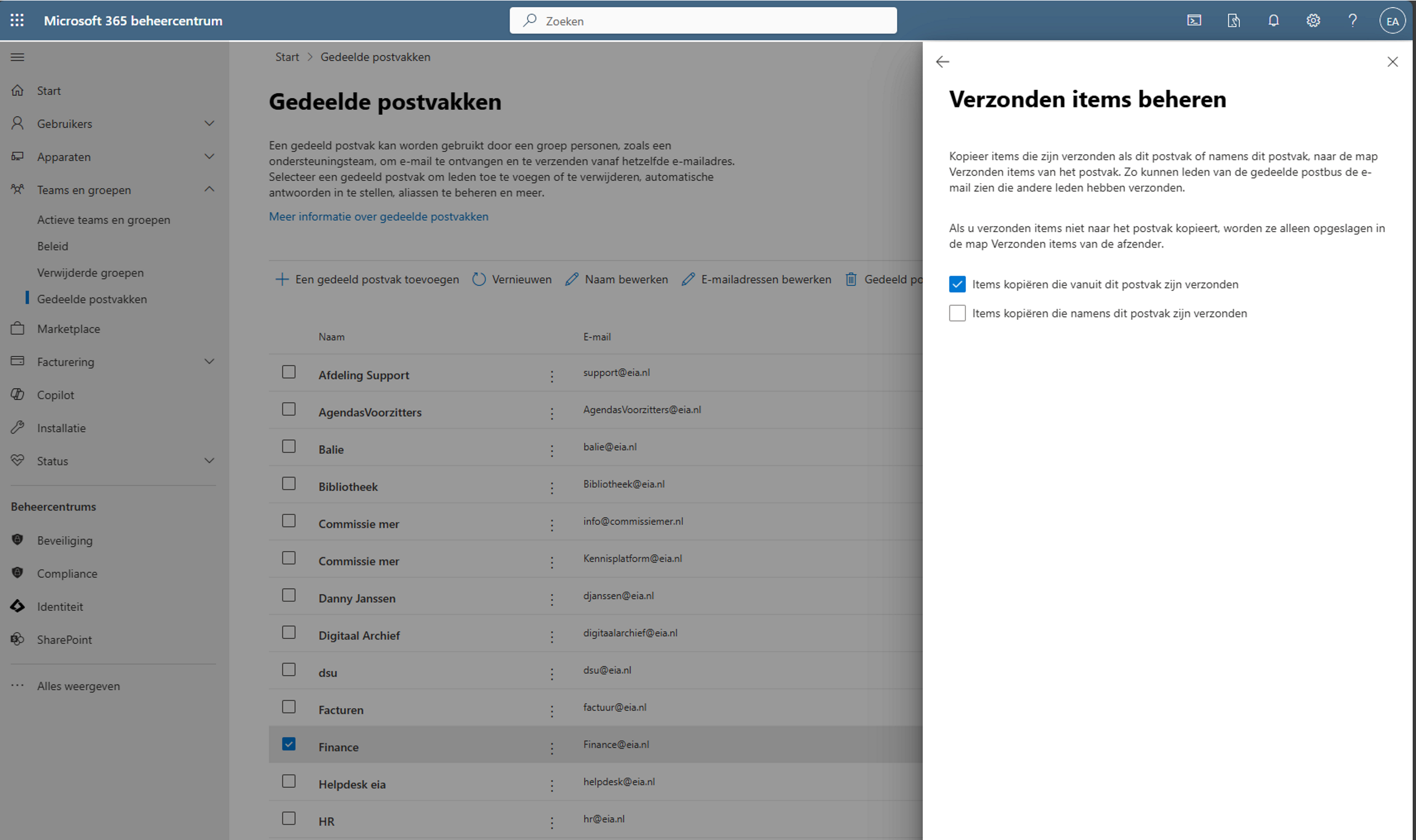 Stap 2: ga naar Gedeelde postvakken